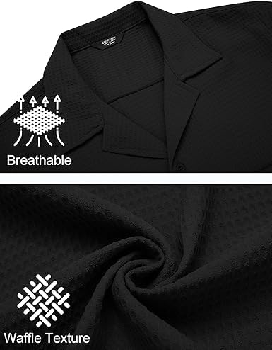 - COMFORTABLE FABRIC】This lightweight waffle shirt is made of soft and comfortable fabric with high breathability as well as water absorption, which provides comfort, breathability,coolness, and lightness even in summer.