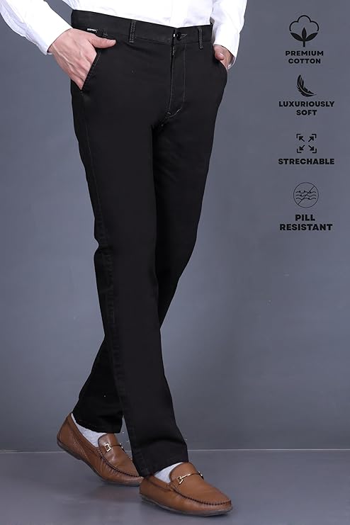 - FABRIC: Men Trouser is Made from a COTTON RICH FABRIC for breathability and Lycra for slight stretch. Washcare: Machine washable for easy maintenance. Avoid harsh chemicals to ensure long-lasting durability.
